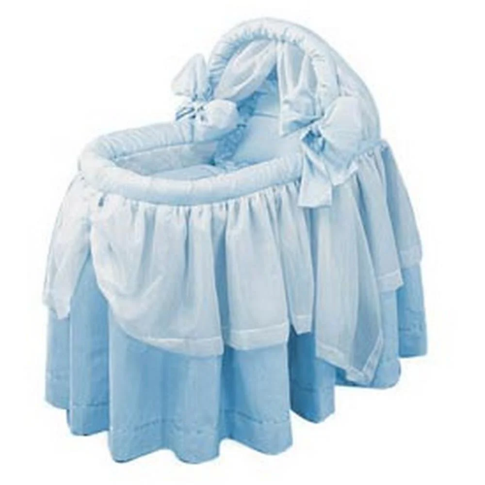 This popular design will add charm to any nursery! The soft Egyptian cotton pique sheets, attractive organza skirt drapes, and graceful bows on each side of the hood make this a bassinet for all to love. The hood's sheer valance adds the final touch to this sweet bassinet. Perfect for a lucky little darling!"