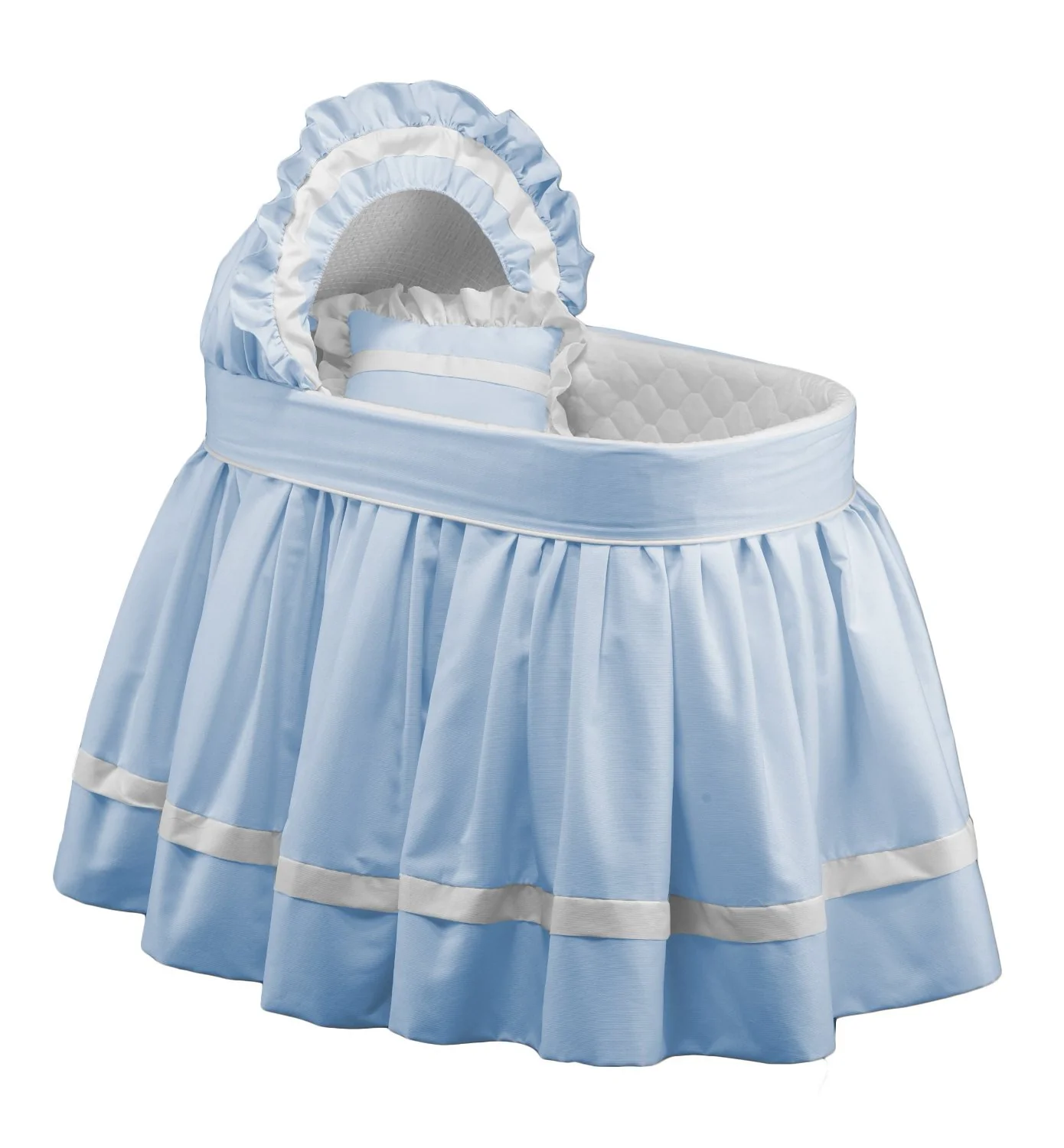 Indulge your little one in luxury with our Sweet Petite Baby Bassinet Bedside Sleeper Set. Featuring a wide, stylish skirt with elegant gathers and a delicate ruffled trim on the hood and pillow. Treat your baby to the timeless beauty of this bassinet. A treasure for any nursery.